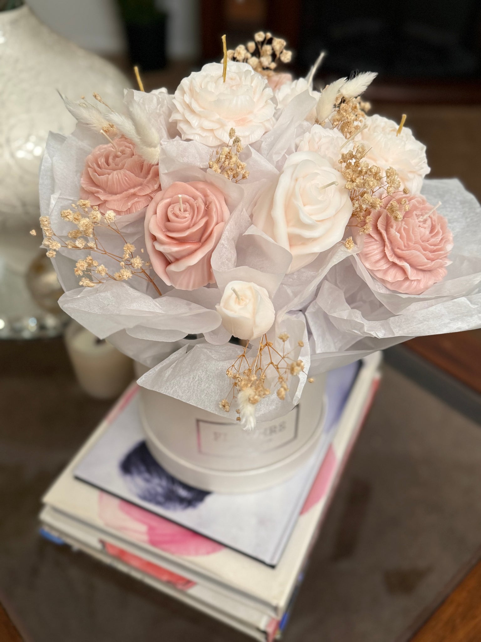 A signature piece from our Valentine’s Collection, this bouquet features 12 handcrafted roses made from plant-based, skin-safe ingredients, arranged in soft romantic tones for a timeless expression of love.